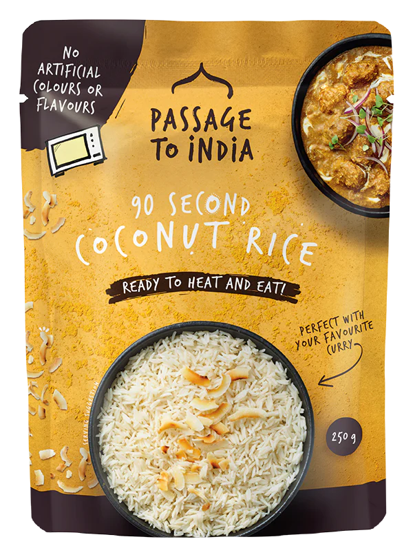 New 90 Second Coconut Rice! Ready to heat and eat - perfect with your favourite Passage To India simmer sauce.