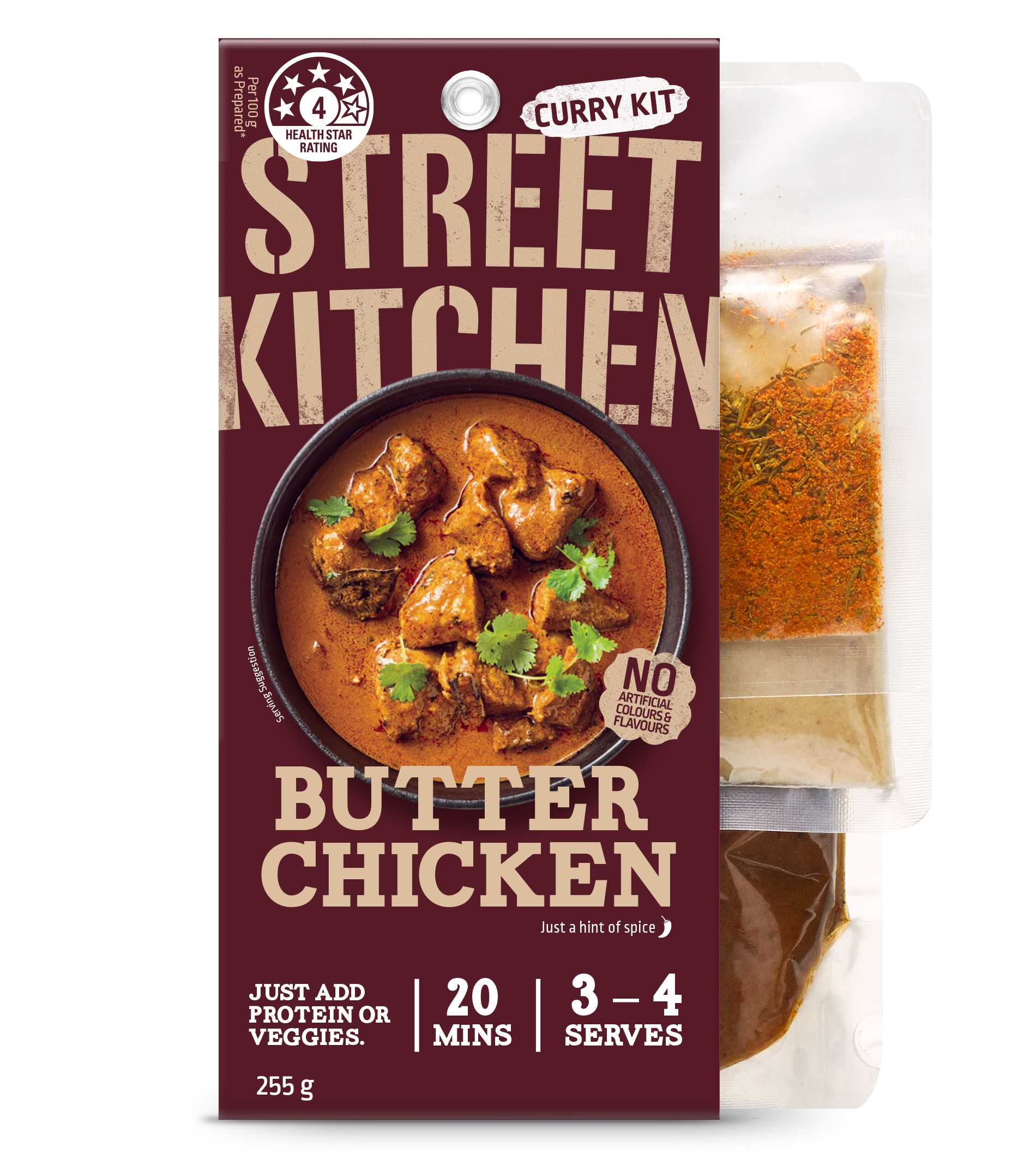 For your delight, the Street Kitchen team have put together the finest ingredients, blended perfectly, providing you with the basis for making the most authentic Butter Chicken yet. With rich tomato flavour, a touch of creaminess, perfectly balanced garlic, ginger and an array of warming spices, a taste of this Butter Chicken will land you in the bustling streets of India.