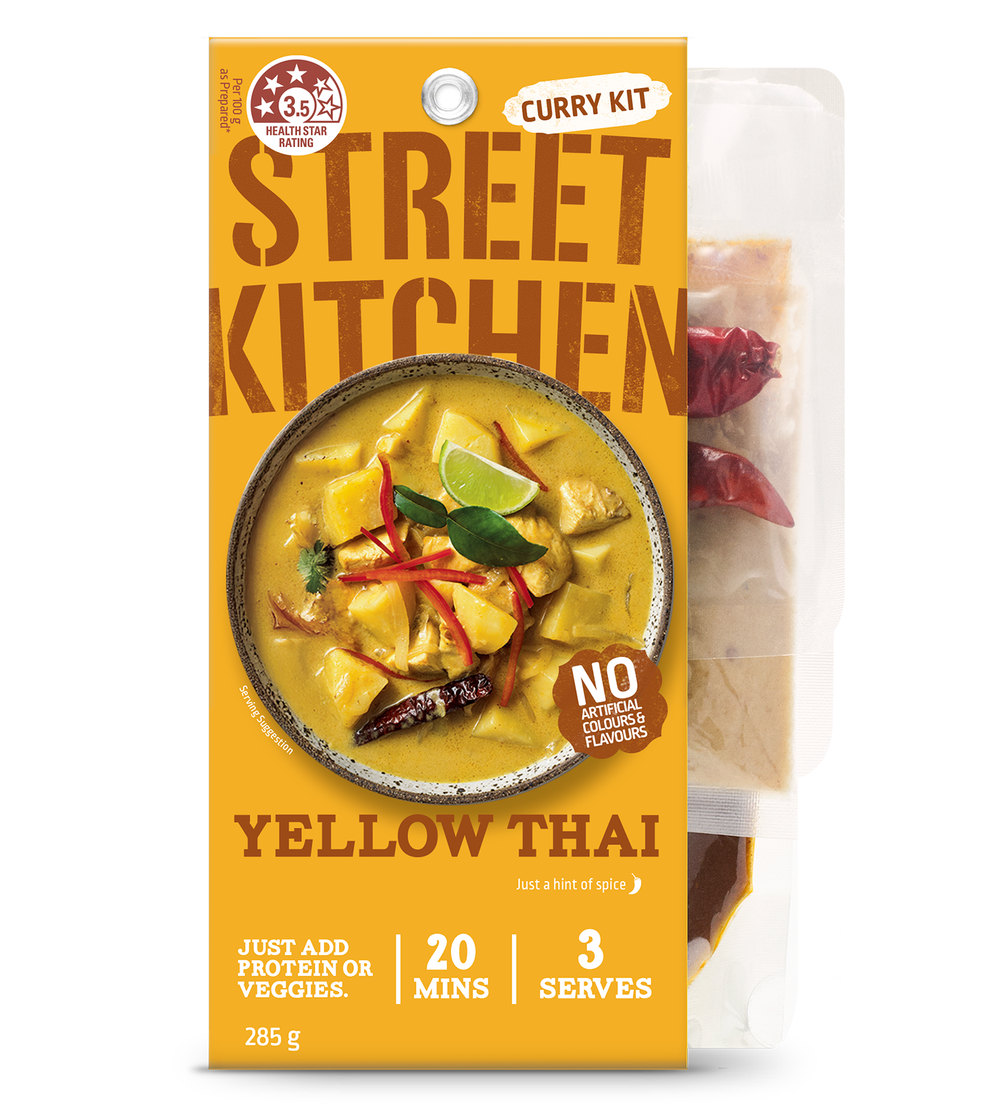 This Thai Yellow scratch kit comes with a sachet of curry paste, a sachet of dry spices and a sachet of coconut milk so you can create your own authentic Thai curry at home with ease. The flavour of this Thai Yellow kit includes soft notes of turmeric and mild spices mingled with creamy coconut milk.