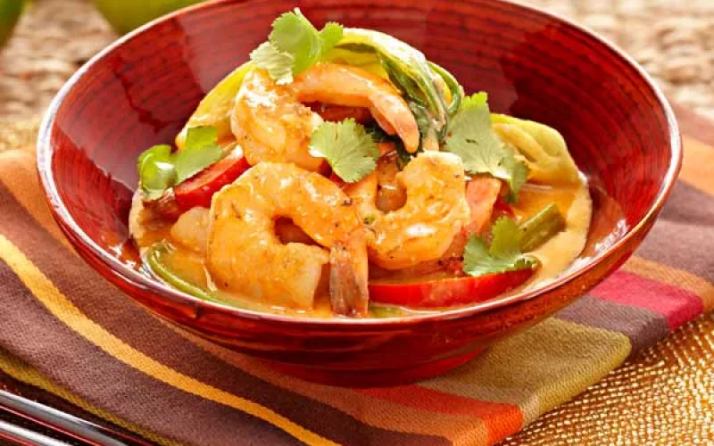 4. RETURN the prawns to the wok and heat through, then spoon over rice and serve with lime and coriander. Serve immediately