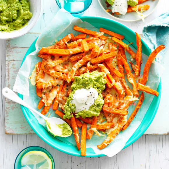 Not sure what to serve with sweet potato fries? These quick and easy avocado loaded sweet potato fries has only four ingredients and is a great snack, lunch or dinner for the kids.