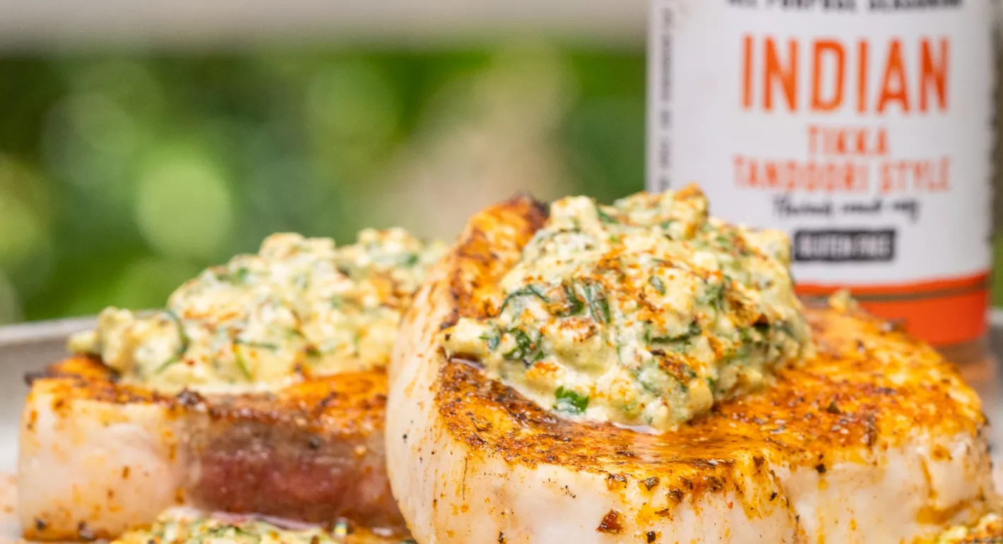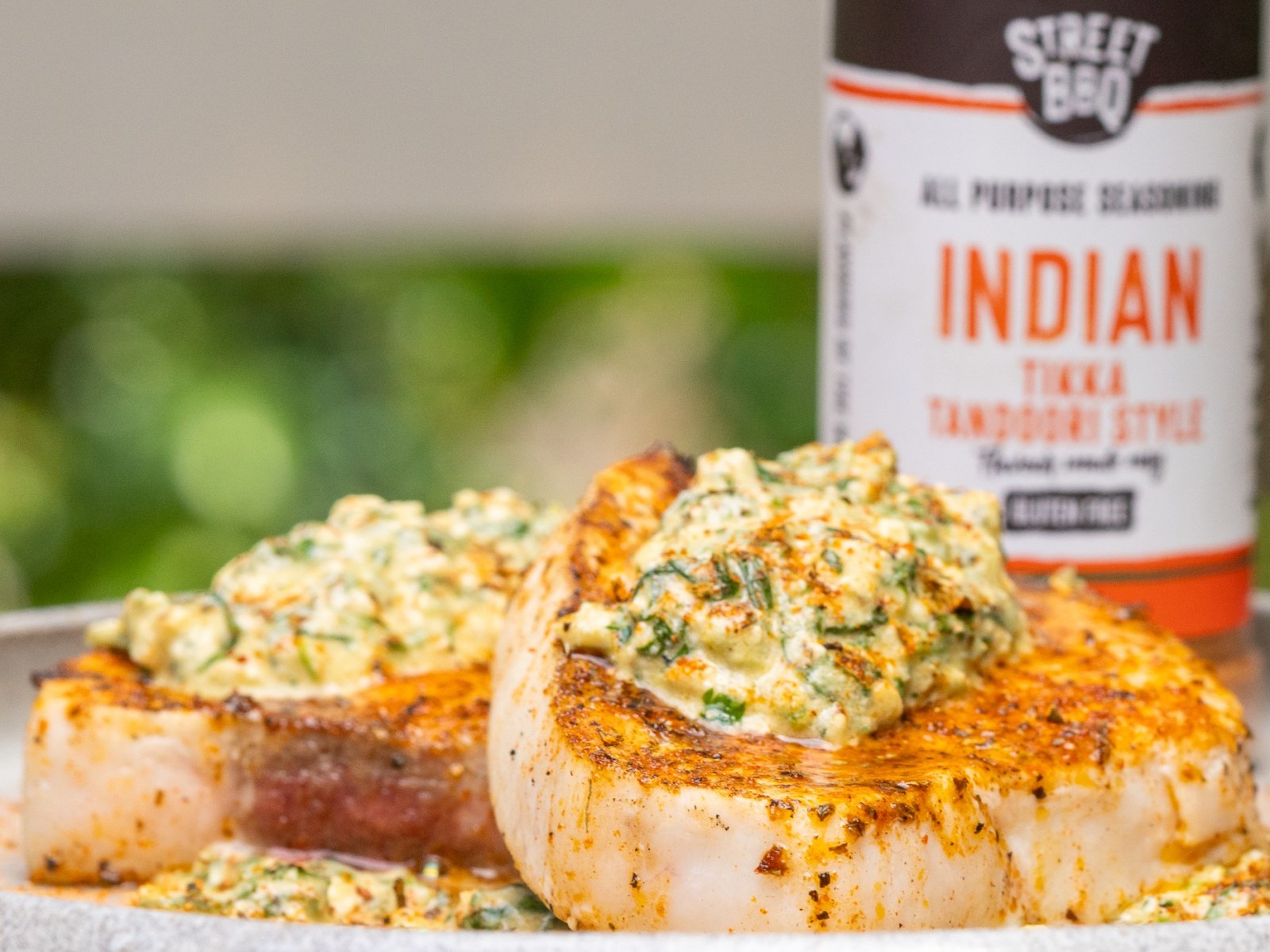 3. Plate the swordfish, spoon over a generous amount of the cashew & coriander sauce, and finish with a final sprinkle of Street BBQ Indian. Best enjoyed with a fresh salad.