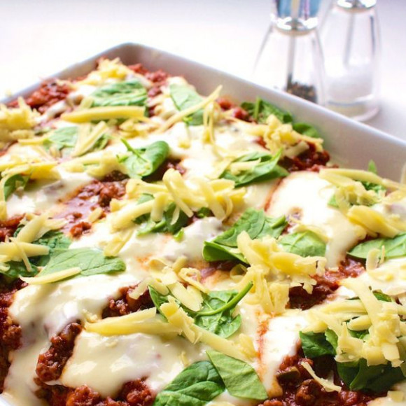 - Megann's Kitchen Notes :: Assembly - Preheat oven to 180°C (350°F). Pre-prepare a large lasagne dish by lightly greasing it with butter. Place approx ¾ cup of the meat sauce on the base of the dish. Alternate between layers of lasagne sheets, meat sauce, cheese sauce & baby spinach, finishing with a cheese & spinach layer. Your dish should take 4-5 layers. Sprinkle with cheese & bake for 45-50 minutes or until cooked through. Rest for at least 10-15 minutes before serving. :: You can prepare & assemble your lasagne up to a day in advance as the flavours that are released through the pasta are exceptional! :: Resting your Lasagne allows excess moisture to seep into the pasta sheets so it holds form to avoid serving a sloppy mess. :: Any leftover sauce, I freeze for toddler meals.