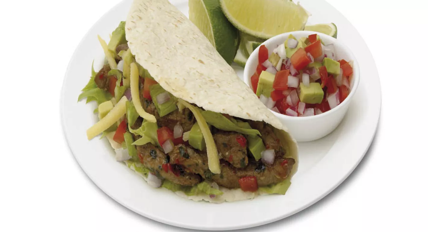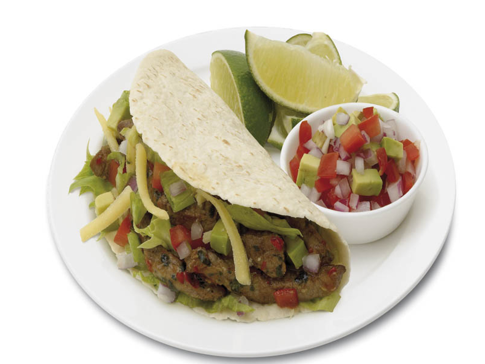 - Serve beef strips in warmed tortillas, with lettuce, avocado salsa, cheese, sour cream and lime wedges.