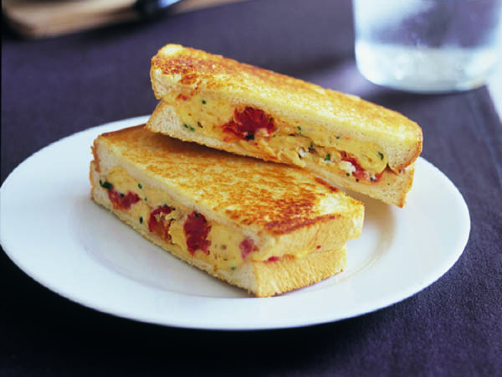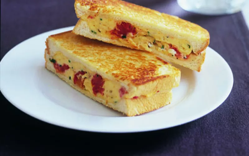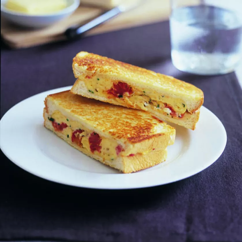- Place sandwiches in a preheated jaffle machine. Cook for 5 to 6 minutes or until bread is golden. Repeat with remaining egg, butter and bread. Serve