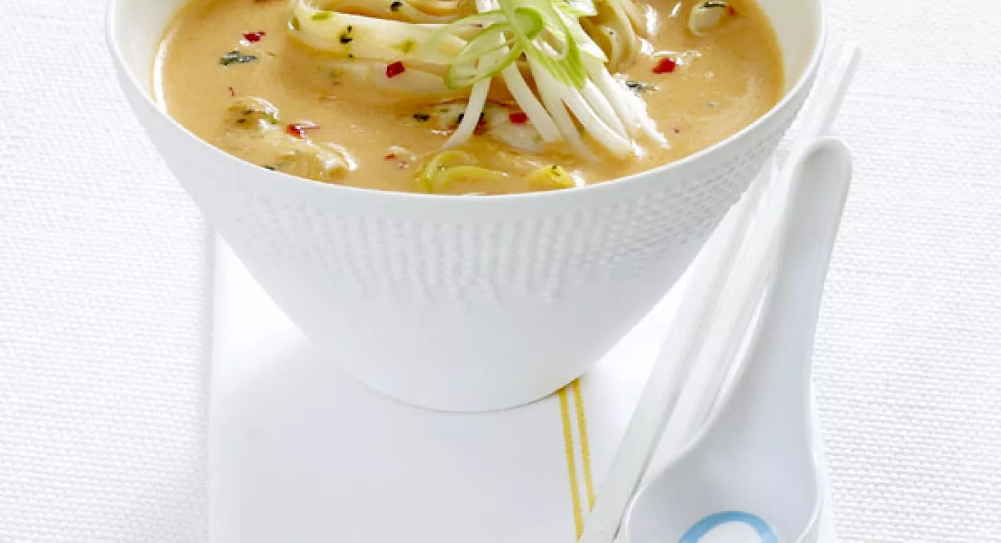 Add laksa paste, Gourmet Garden Hot Chilli and Gourmet Garden Lemongrass. Cook until fragrant. Add coconut milk, fish sauce and reduced salt chicken stock. Simmer for 6 to 8 minutes or until reduced slightly.