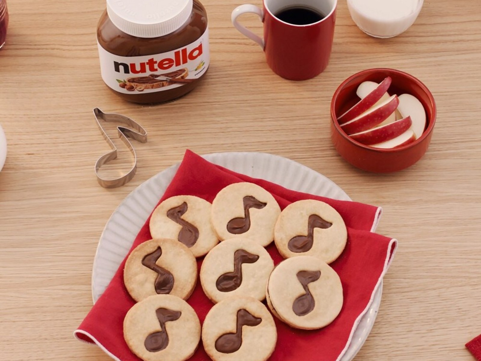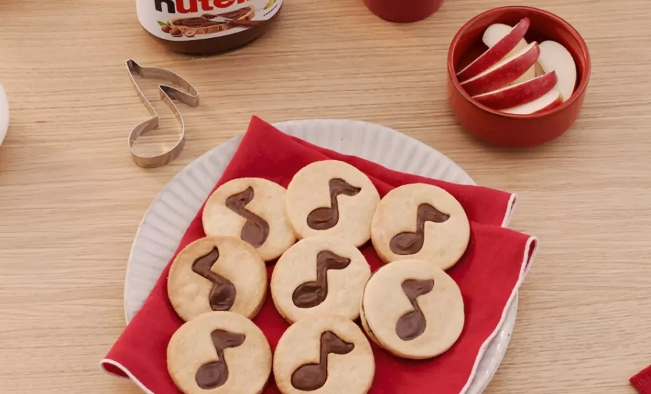 - Bake on the middle shelf of the oven for 10 minutes. Take them out of the oven and leave to cool. Spread Nutella® on the bottom layers , then cover with the top biscuits. Enjoy!