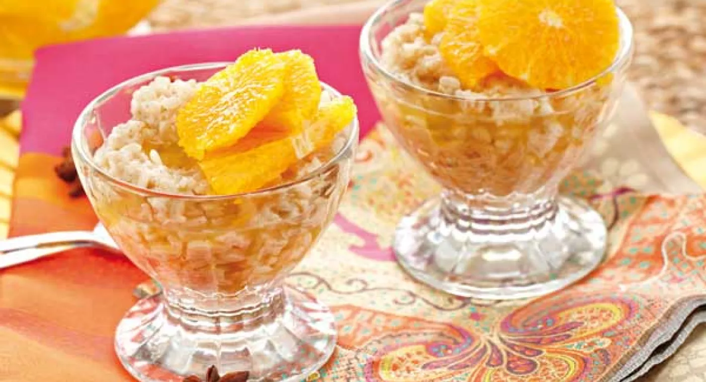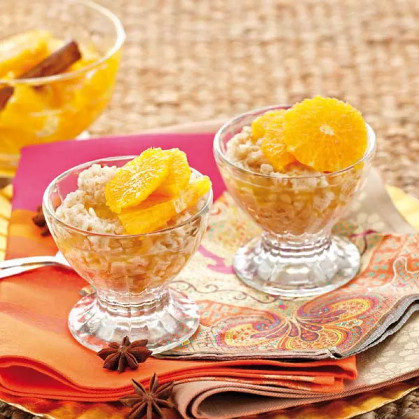 - SPOON the rice into 4 serving glasses, top with the oranges and drizzle with syrup. Serve immediately