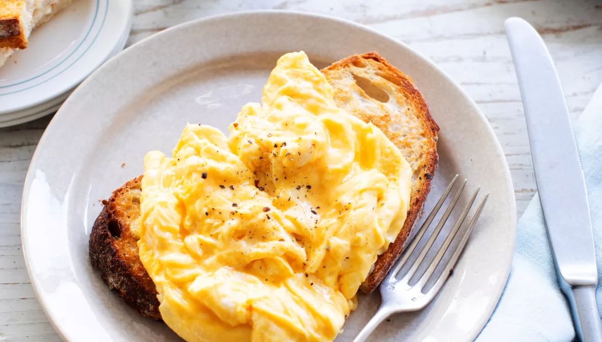 - Remove pan from the heat as eggs will continue to cook. Slide onto toast and serve with cracked black pepper.