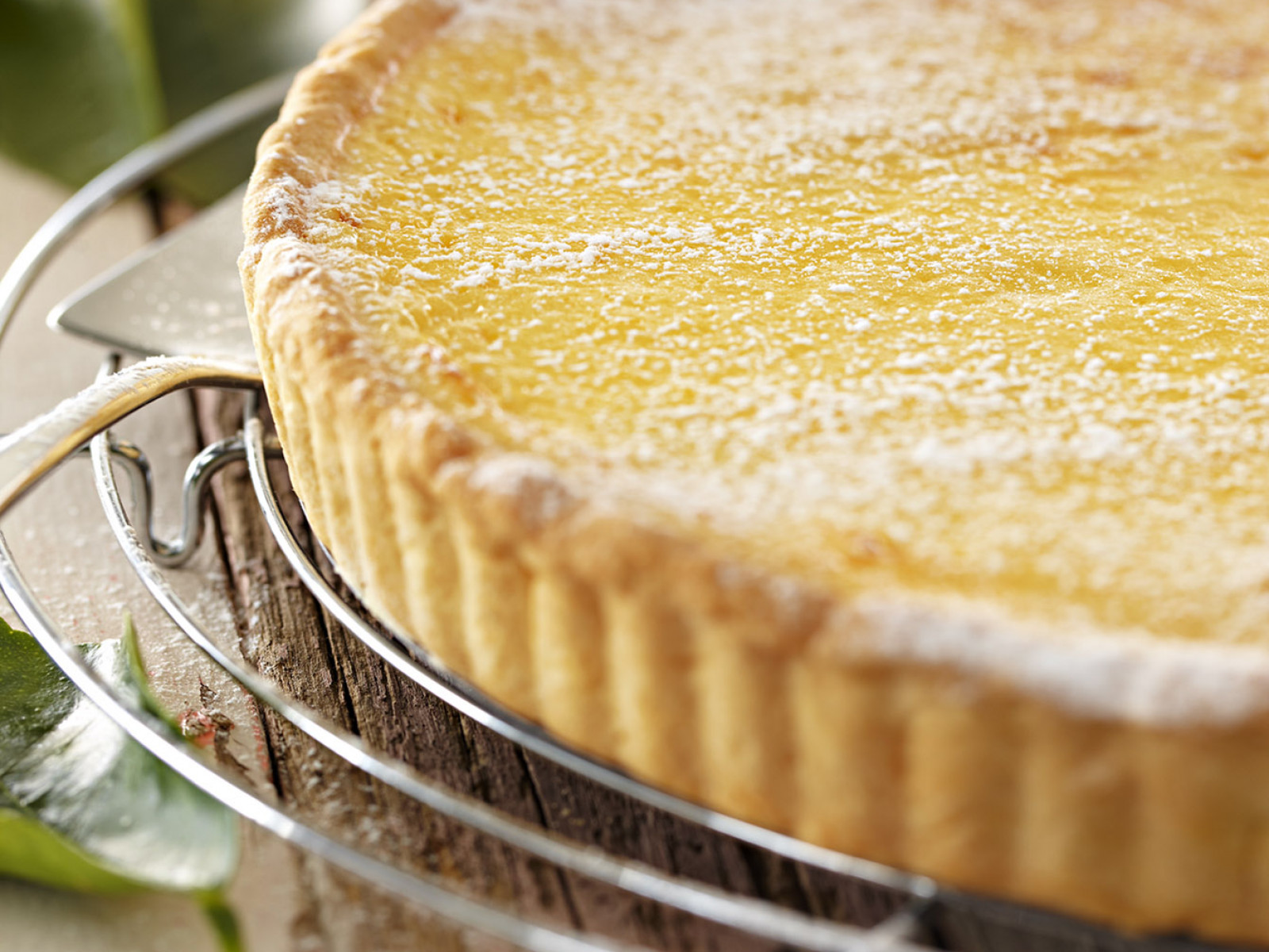 - ROLL out pastry between 2 sheets of baking paper to line a 26cm round fluted tart pan with a removable base. Use a fork to prick the base well and bake in a hot oven 200°C for 8-10 minutes or until lightly golden