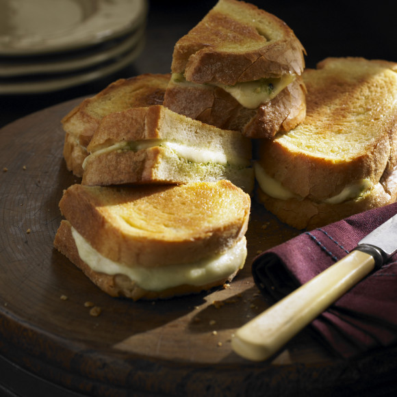 - Slice Bakers Delight Pane di Casa Loaf into 8 slices. Spread bread liberally with pesto, add thick slices of mozzarella and top with second slice of bread