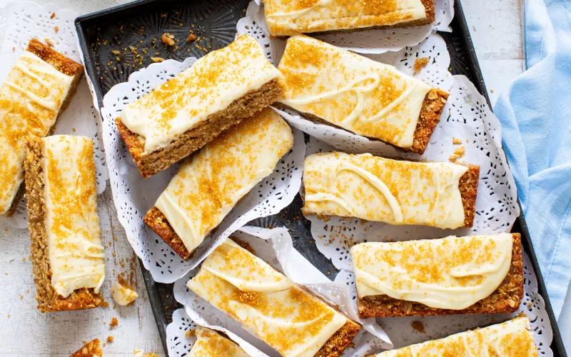 A classic made new – this Golden Syrup Slice is sweet, crunchy and golden with a hint of oats. Quick to make from pantry staples, it’s an old-fashioned favourite perfect for tea breaks or lunchboxes.