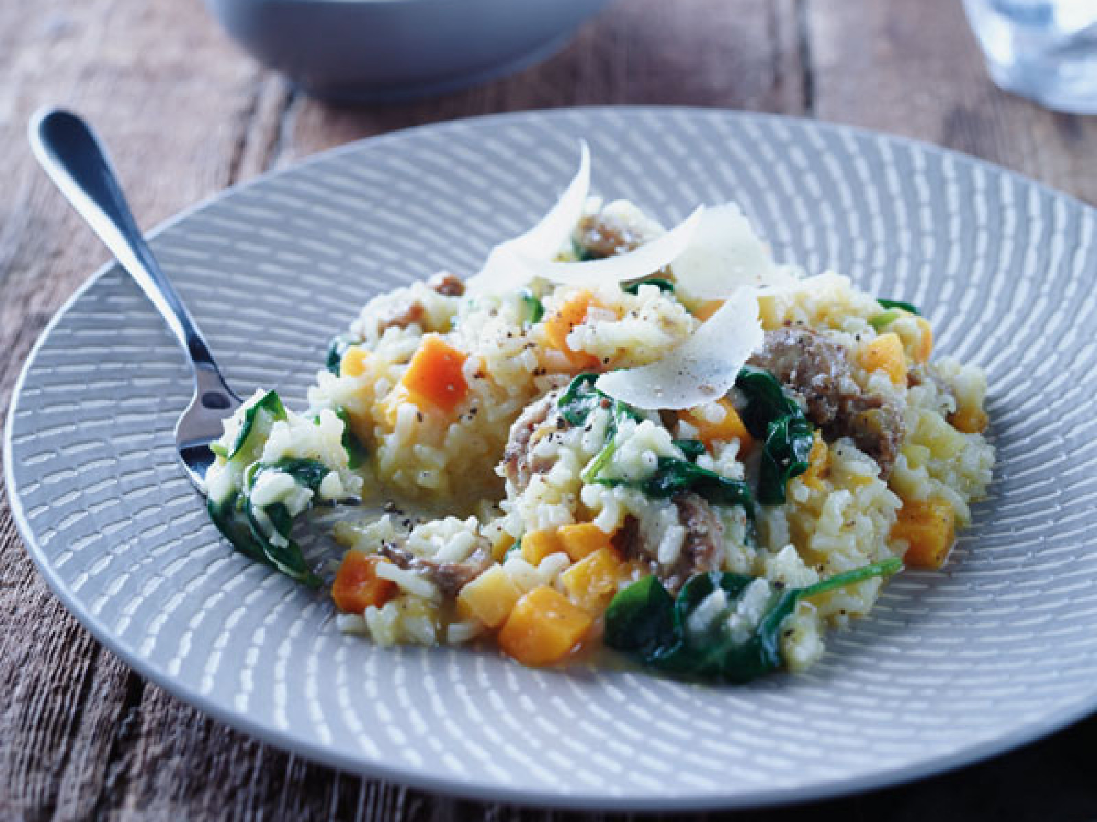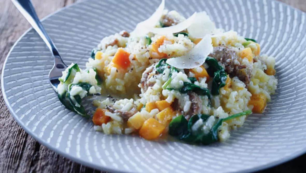 - Add Sacla Pumpkin & Parmesan Sauce and water and cook, stirring regularly until liquid is absorbed and rice is tender. This will take around 15-20 minutes. Add extra water if needed, the risotto should be the consistency of porridge.