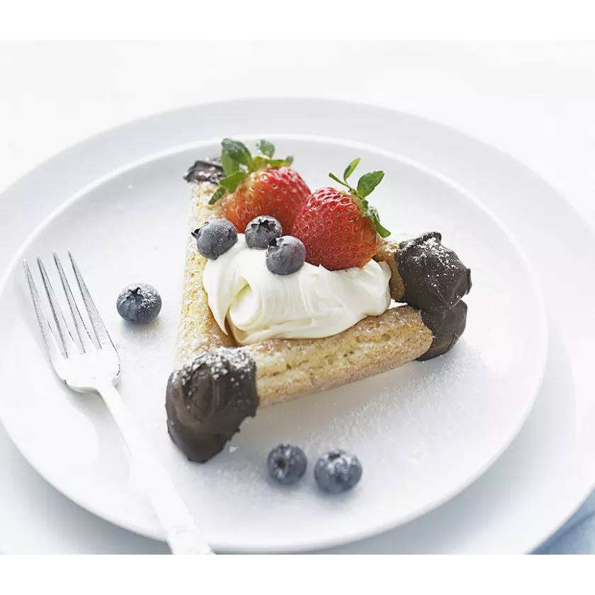 5. ARRANGE frames on individual serving plates. Fill the centre of each with a dollop of PHILLY, fresh fruit and a dusting of icing sugar. Serve immediately