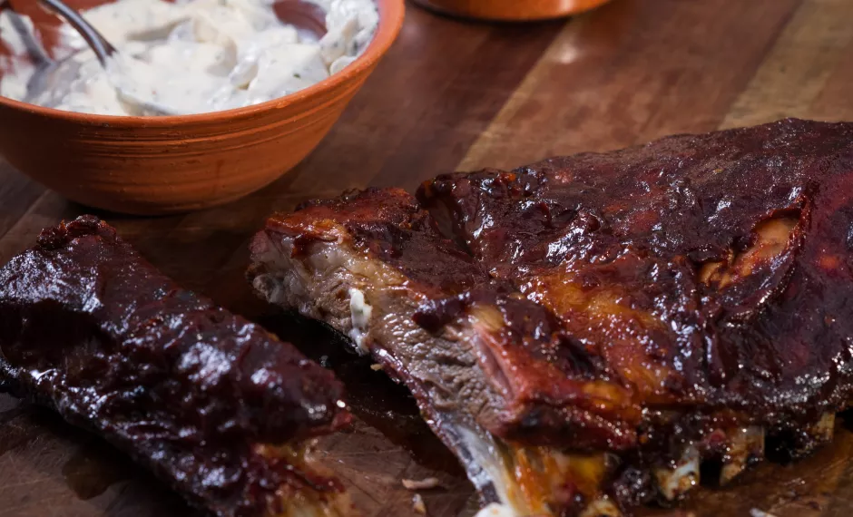 - Place the ribs bone side down and cook for 20 minutes, increase the temperature to 175c and cook for a further 30 minutes (if using a direct BBQ make sure you are offsetting the ribs).