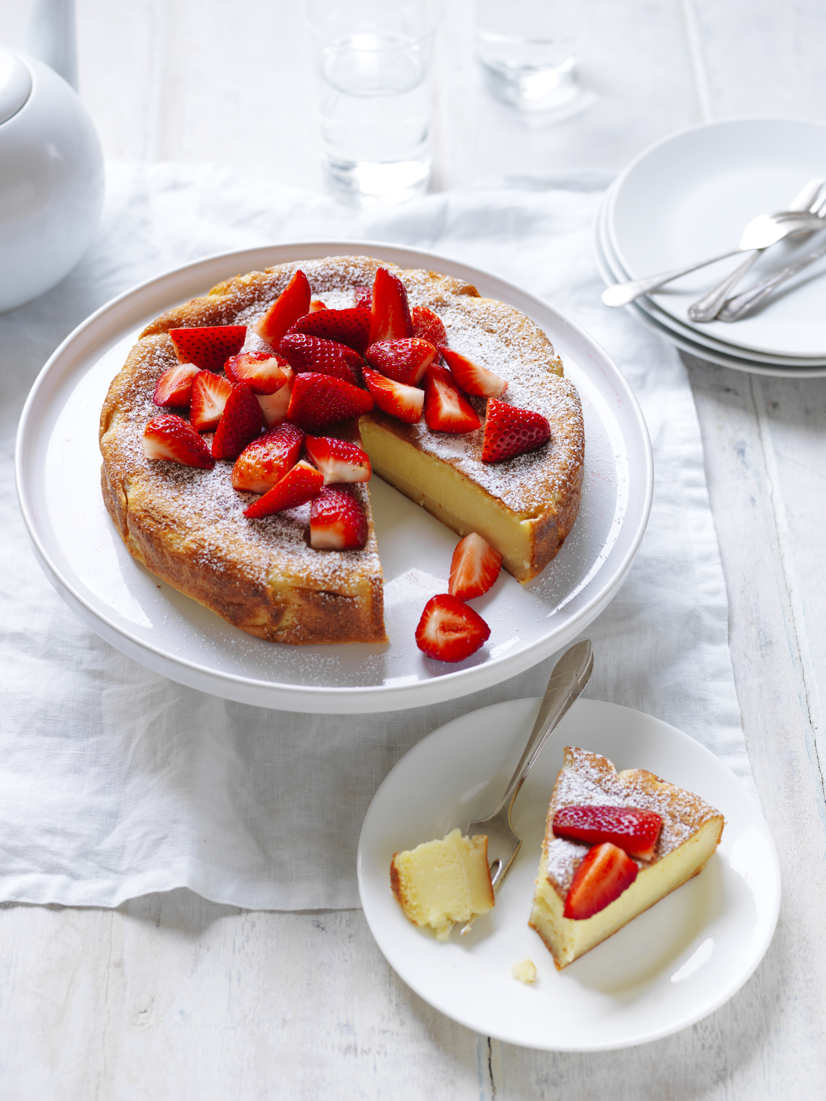 - Pour mixture into prepared tin and transfer to the oven for 1 hour and 10 minutes. Bake until the top is golden and there is a slight wobble in the centre. Leave in tin until completely cool. Remove cake by lifting the baking paper out of the tin