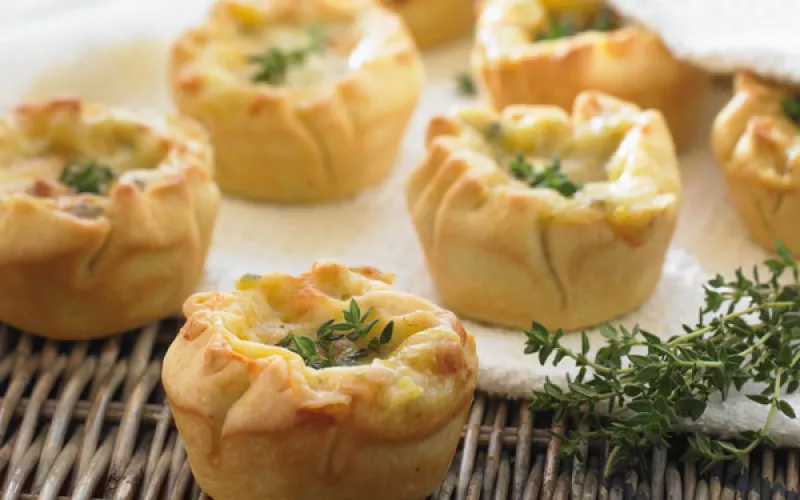 - Bake in a hot oven 200°C for 15 minutes or until tops are golden. Cool slightly before removing from tins. Serve warm or cool, garnished with thyme if desired