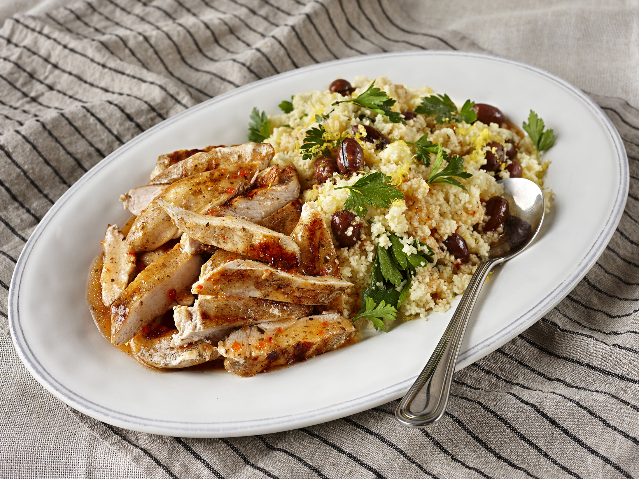 Moroccan Spiced Chicken with Lemon Olive Couscous