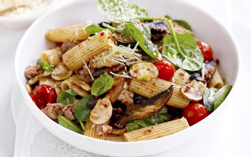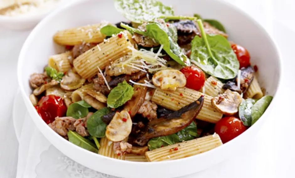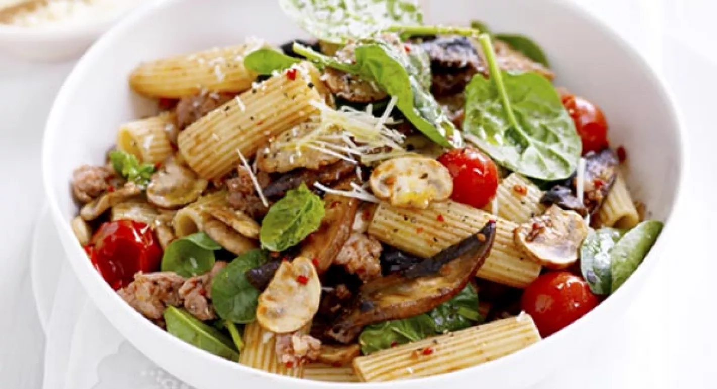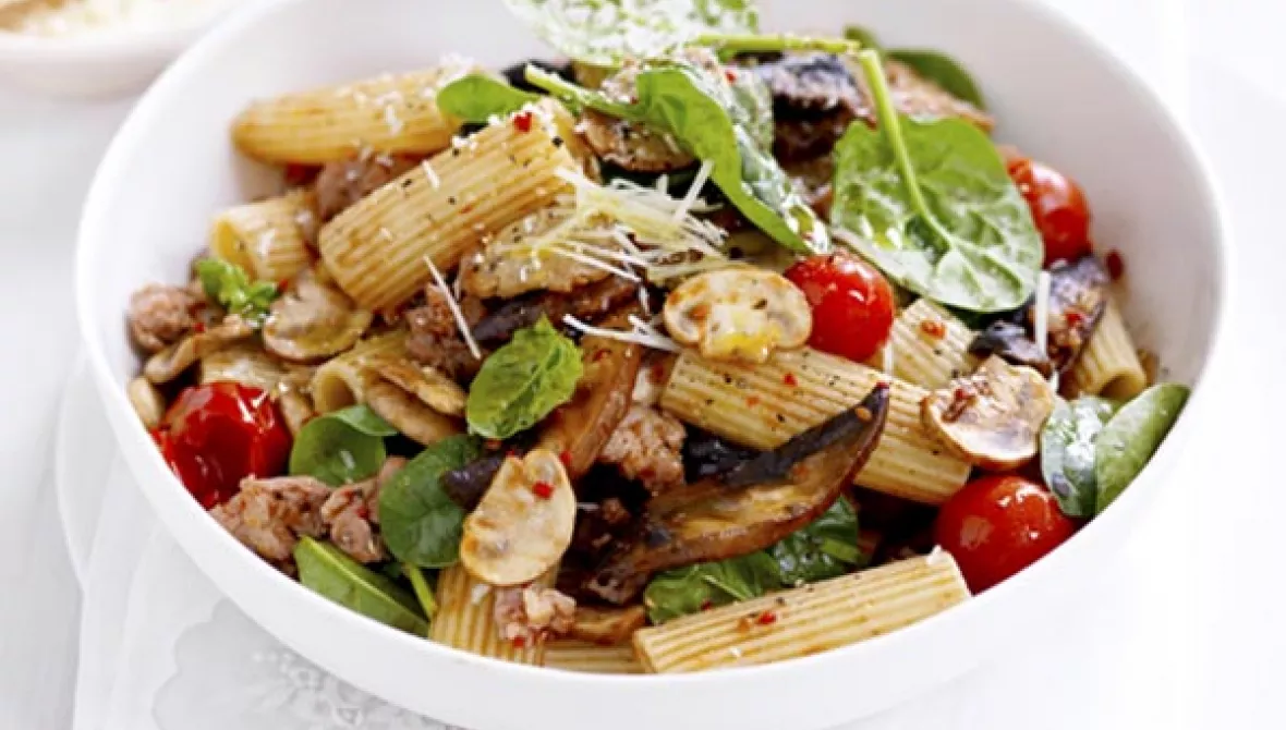 Mushrooms, Sausage & Spinach Rigatoni