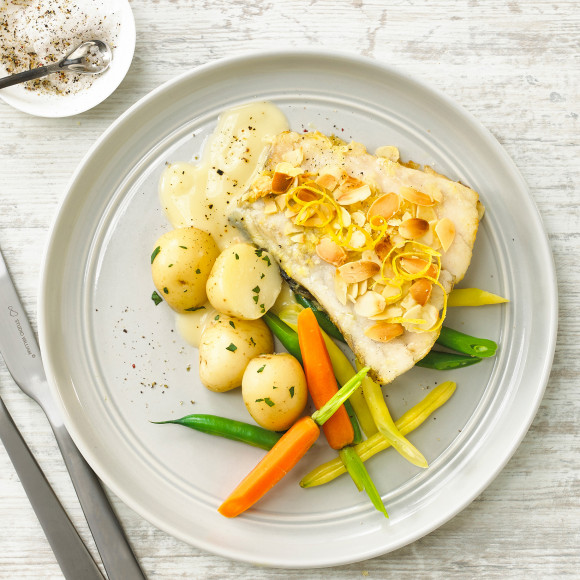 Oven Baked Almond Crusted Barramundi Served with Vegetables