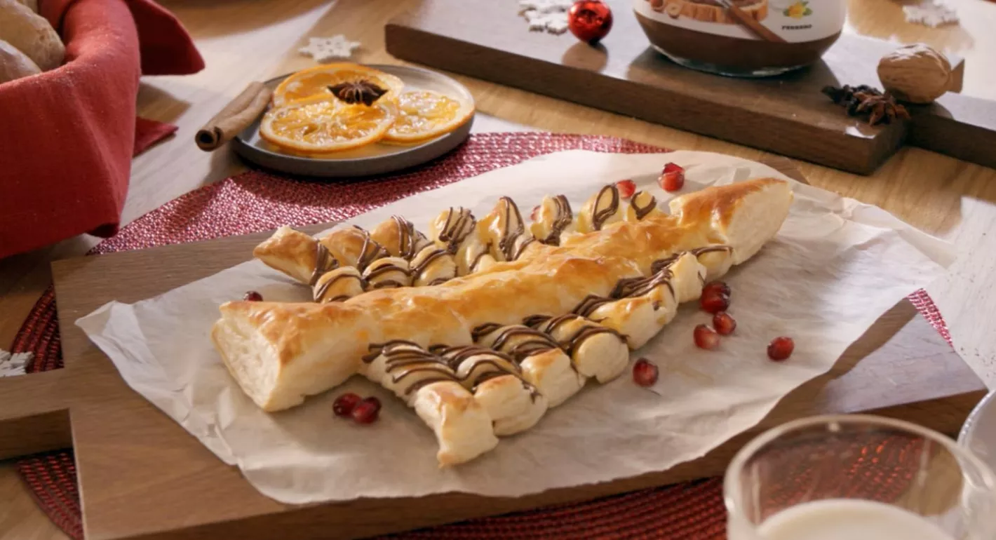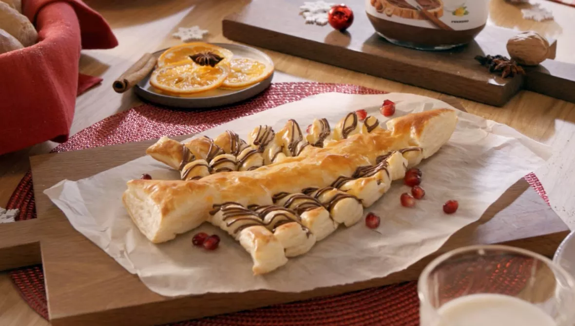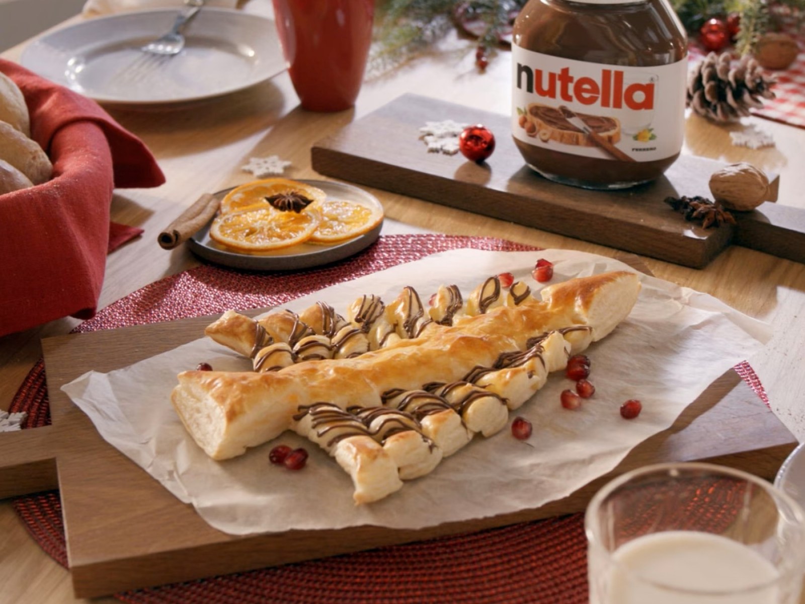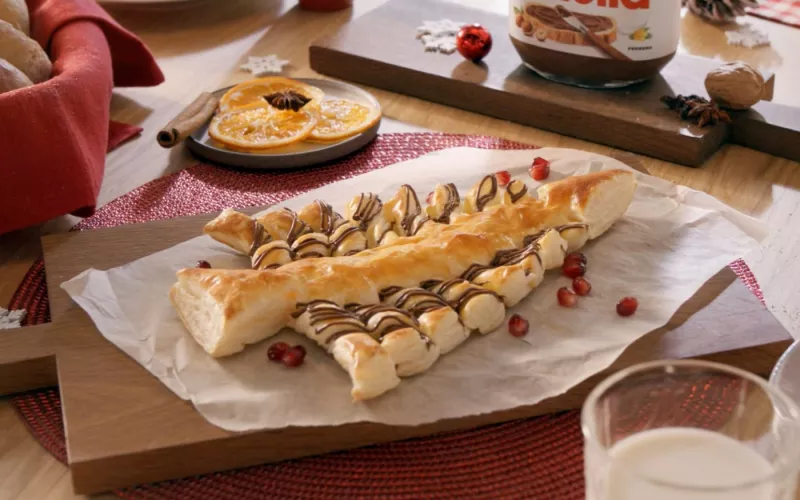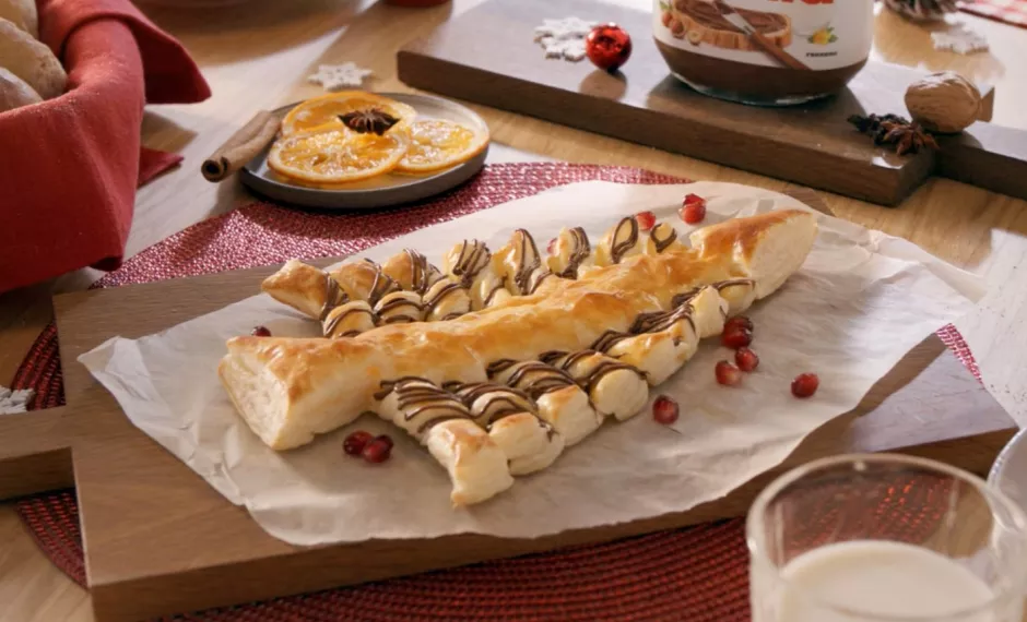 5. Bake the pastry for 12-15 minutes, let it cool and decorate it with Nutella® using a baking pipe. For an extra festive look, you can decorate your tree with cranberries or pomegranate seeds.