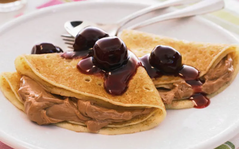 - PLACE 2 crepes onto each serving plate and drizzle with the cherry sauce. Serve immediately with ice cream if desired