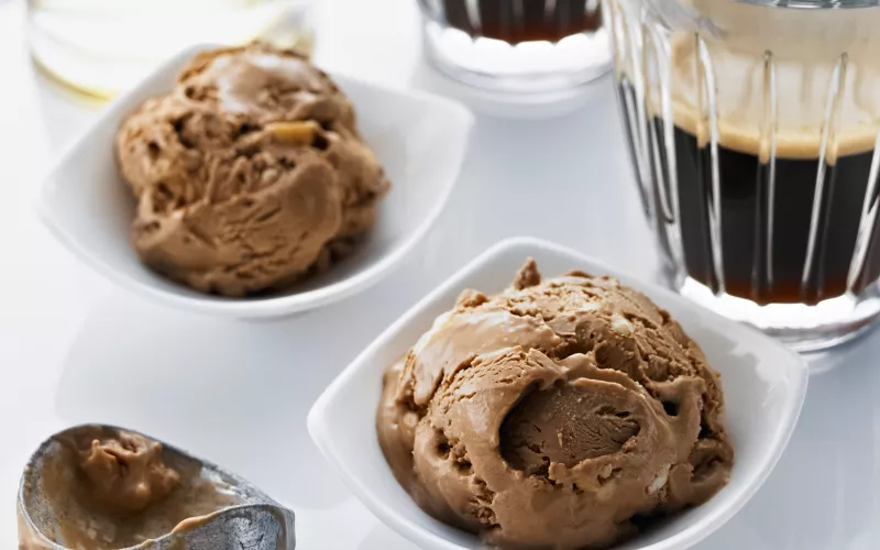 - PLACE a scoop of ice cream into each serving glass. Pour a splash of liqueur into each glass then pour over a shot of hot coffee. Serve immediately