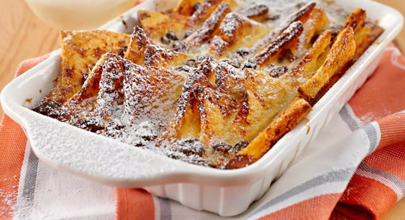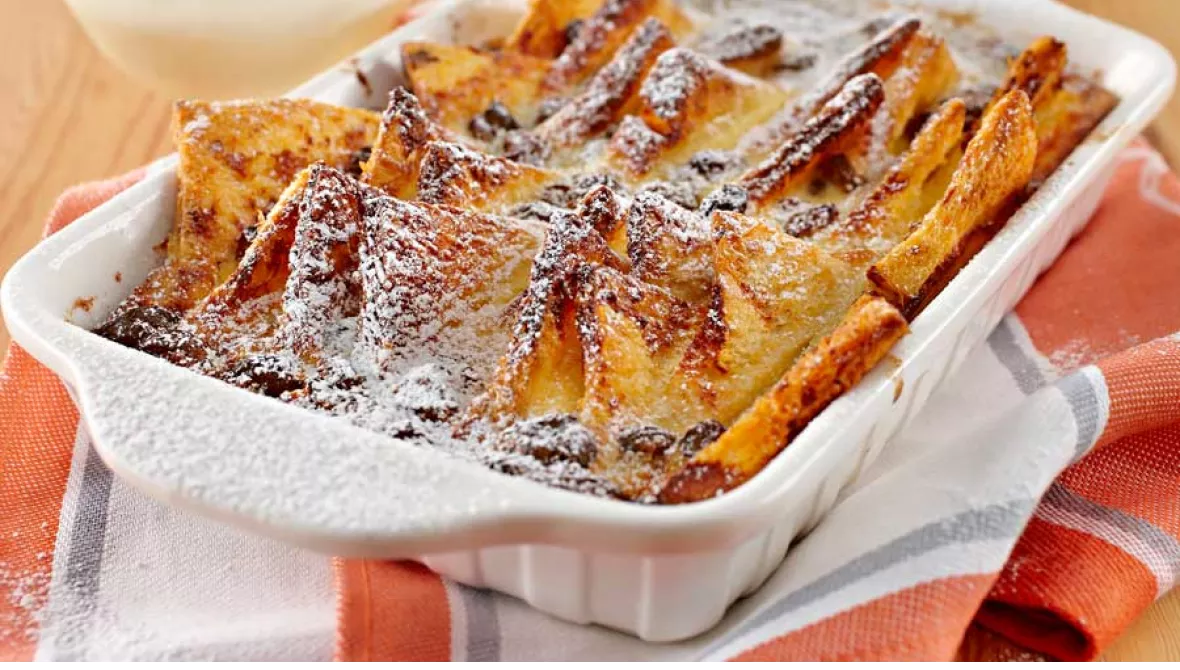 - SPRINKLE the pudding with brown sugar and then bake in a moderate oven 180°C for 35-40 minutes or until set. Dust with icing sugar