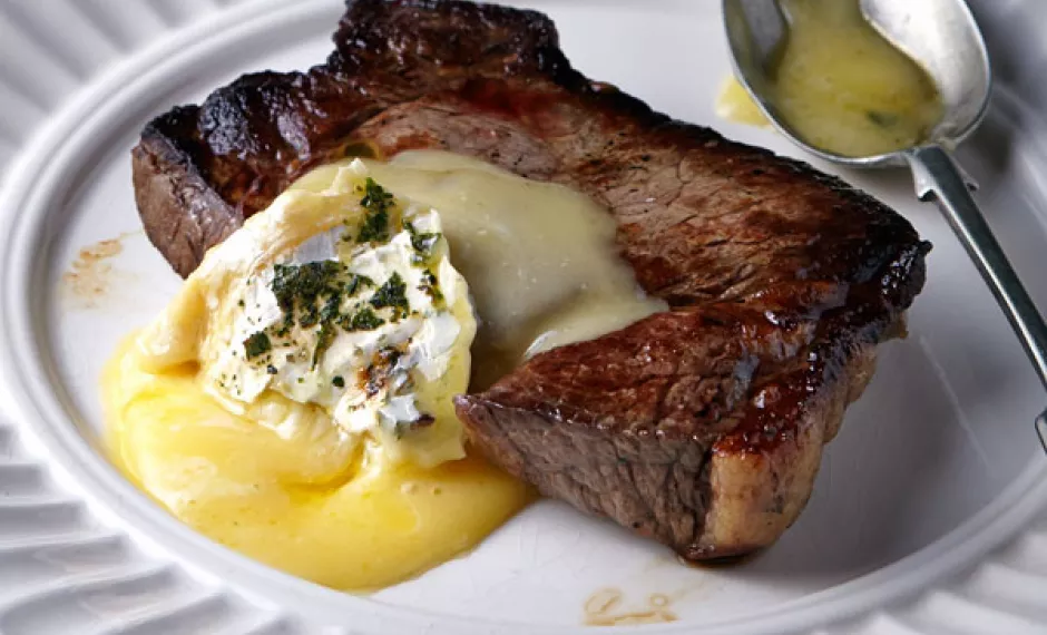Seared Steak with Oozy Garlic and Herb Baked Brie