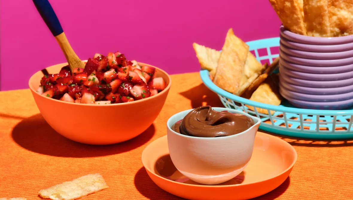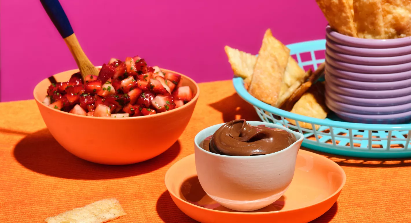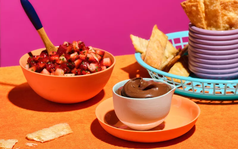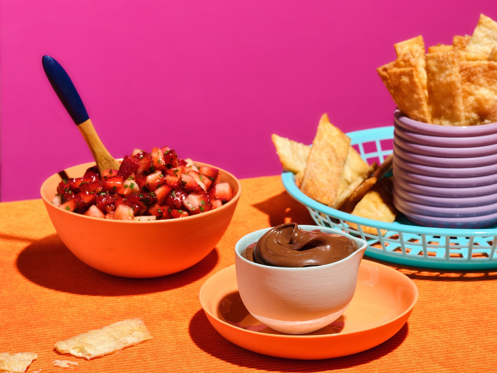 Strawberry Salsa and Tortilla Cinnamon Chips with Nutella