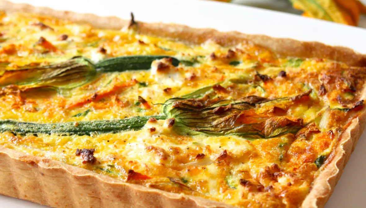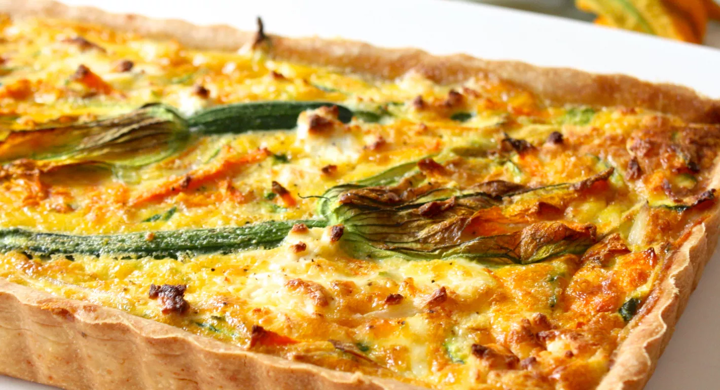 Summer Vegetable & Goats Cheese Tart with Zucchini Flowers