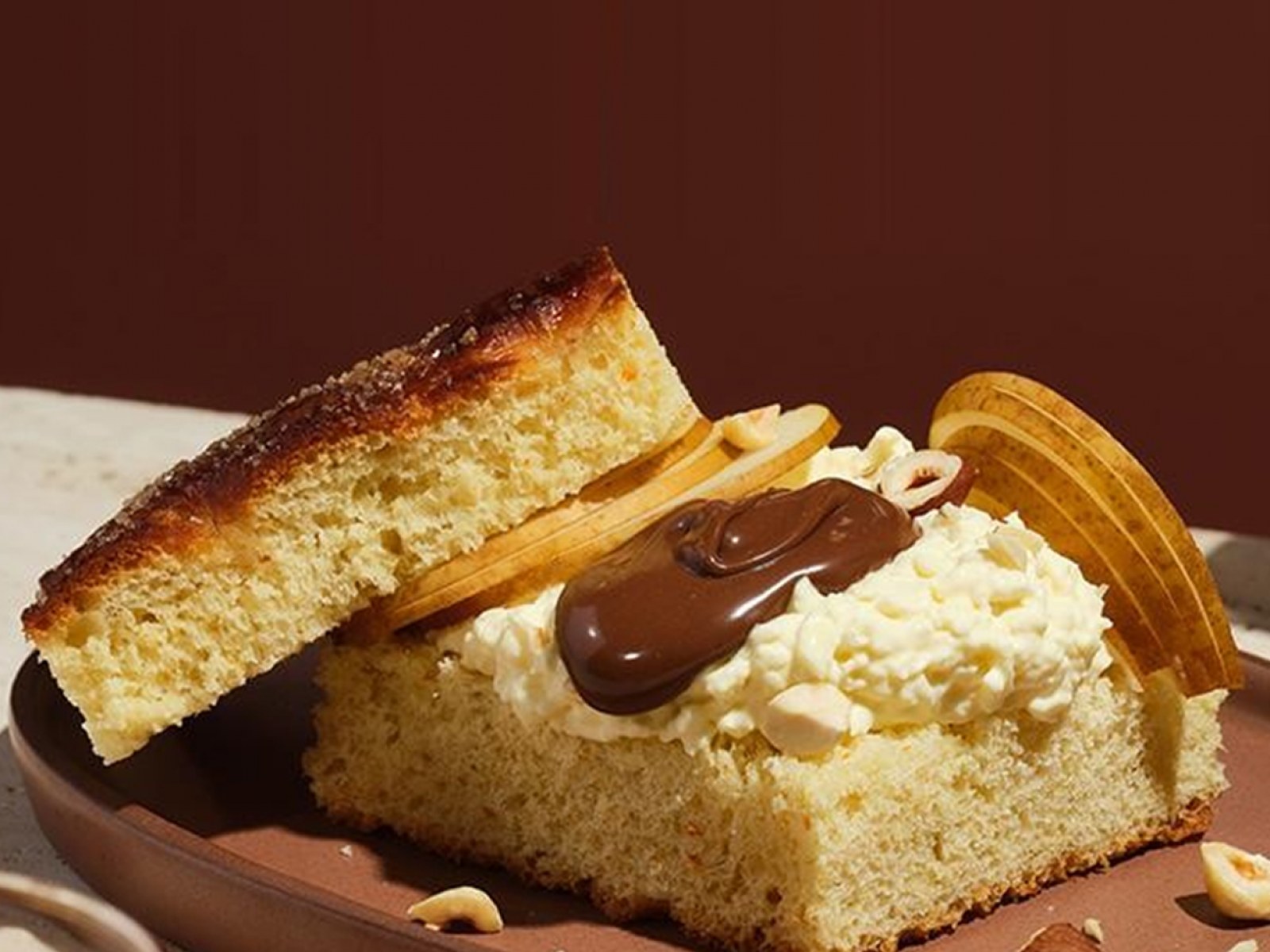 - Spread with stracciatella and top with sliced pear, toasted hazelnuts and dollop 1 tbsp Nutella to serve.