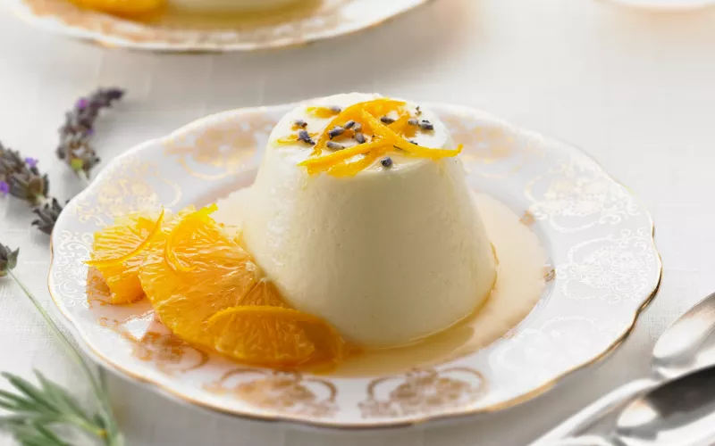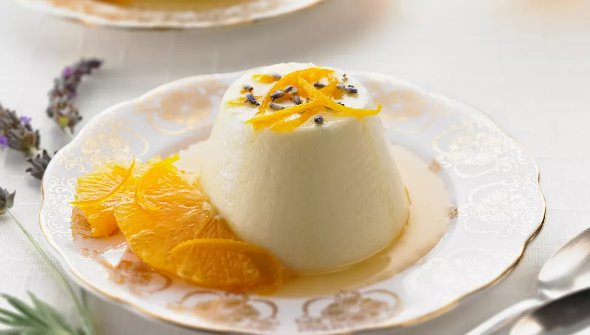 - LOOSEN the Creams gently around the edges then turn out onto serving plates. Serve with Honey rizzled Oranges and decorate with orange zest and lavender