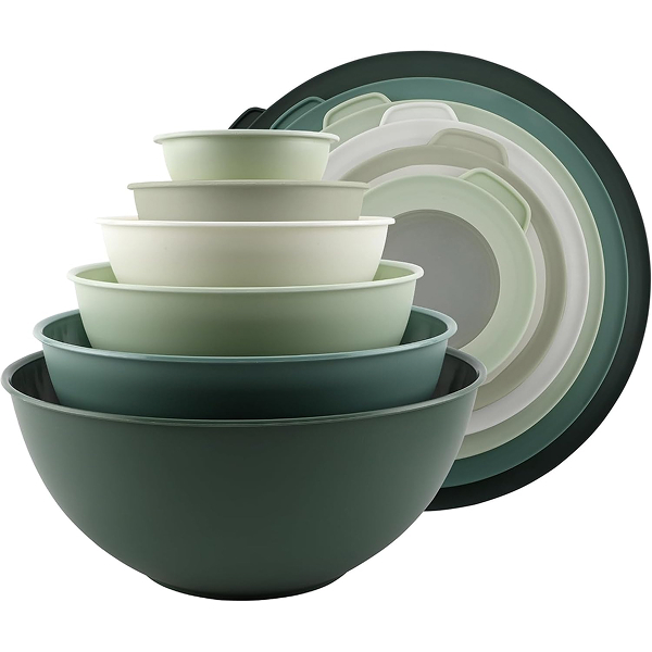 The Cook with Colour mixing bowls are a perfect start: stackable, transparent lids, non-slip and ready for everything from baking prep to salad mixing. They add a soft green tone that feels effortlessly natural.