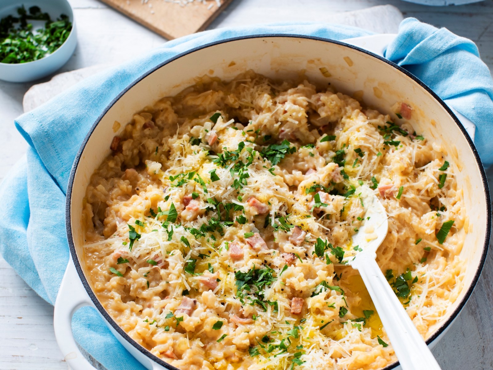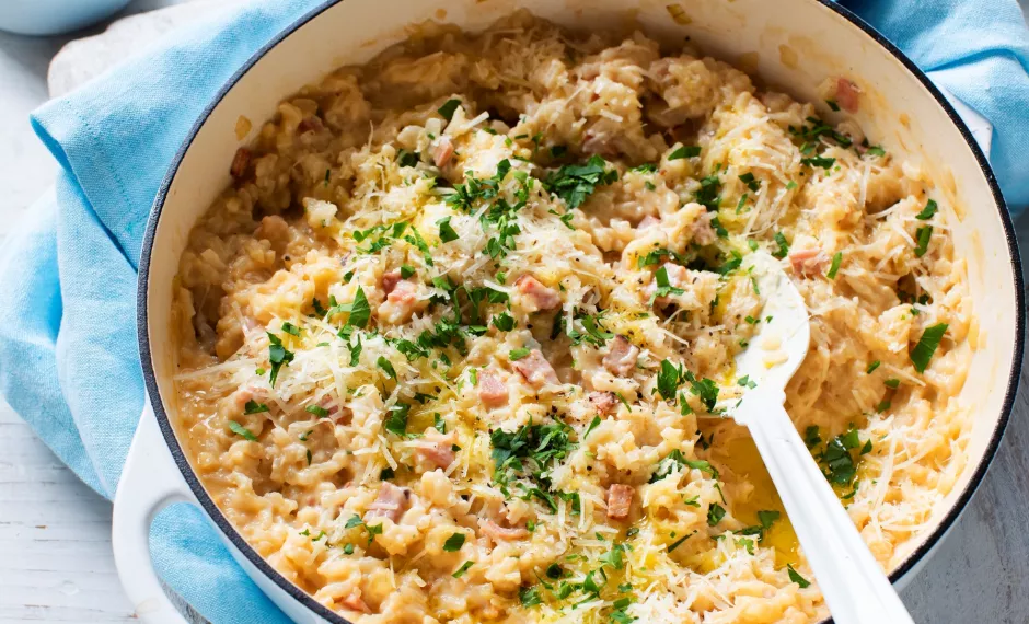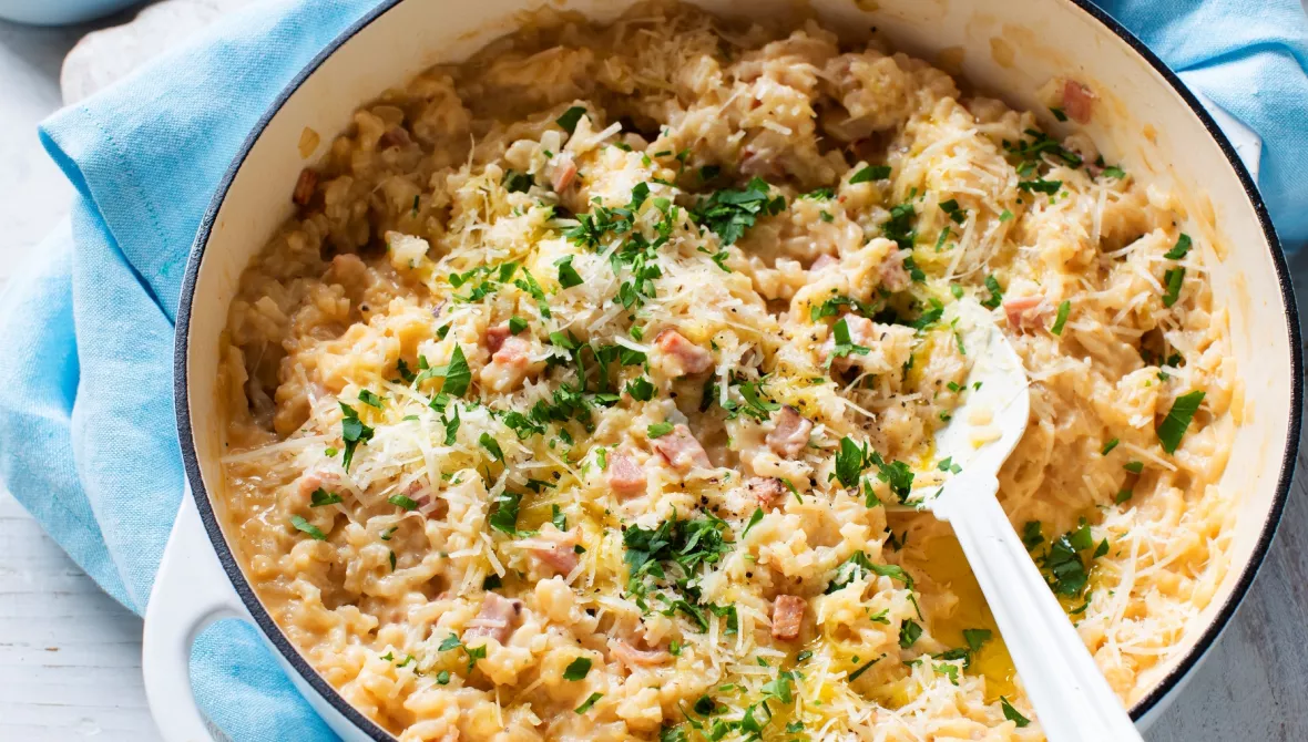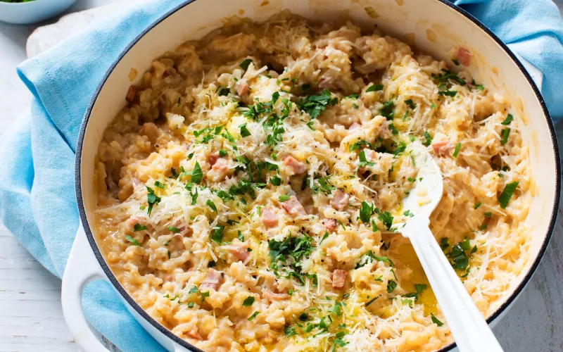All the creamy, comforting flavours of a classic carbonara in risotto form. With smoky bacon, parmesan and perfectly cooked rice, this Risotto Carbonara is a simple yet impressive meal for any night of the week.