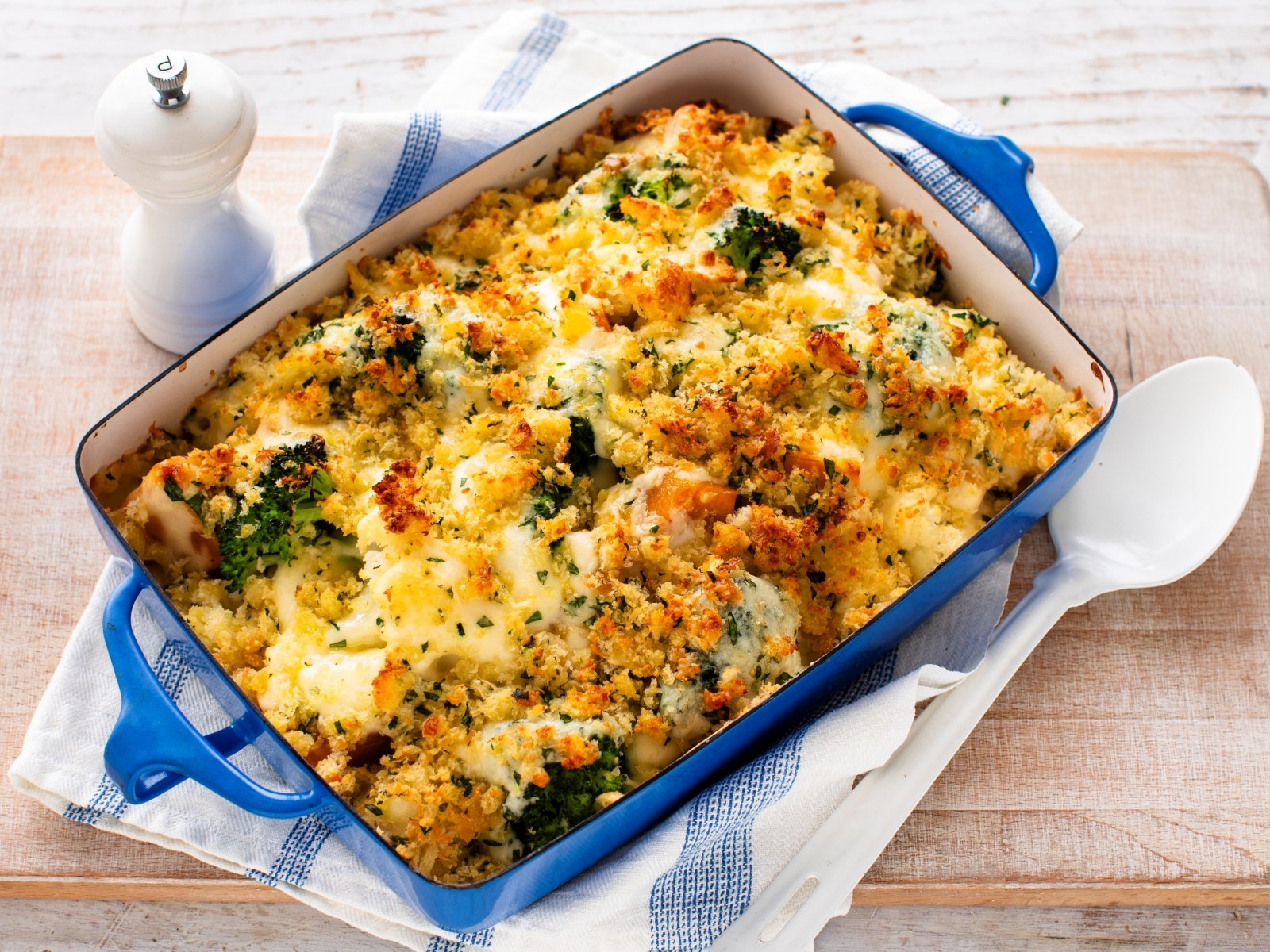 This Crunchy Vegetable Gratin with Bechamel Sauce is a golden, cheesy bake made with cauliflower, pumpkin and broccoli. Topped with buttery breadcrumbs, parmesan and parsley, it’s a comforting side or vegetarian main that’s full of flavour and texture.